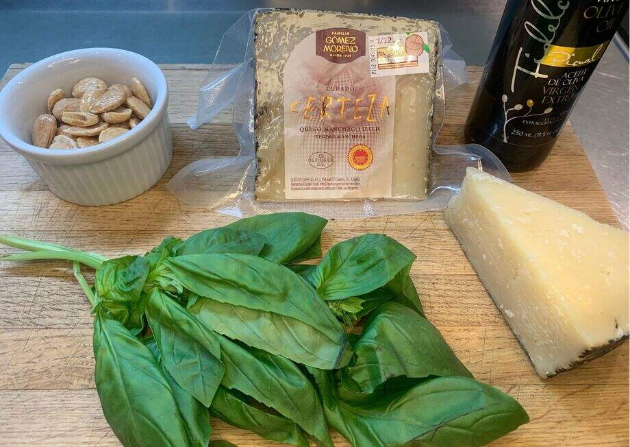 Combining Flavors: Pesto with Manchego Cheese and Marcona Almonds